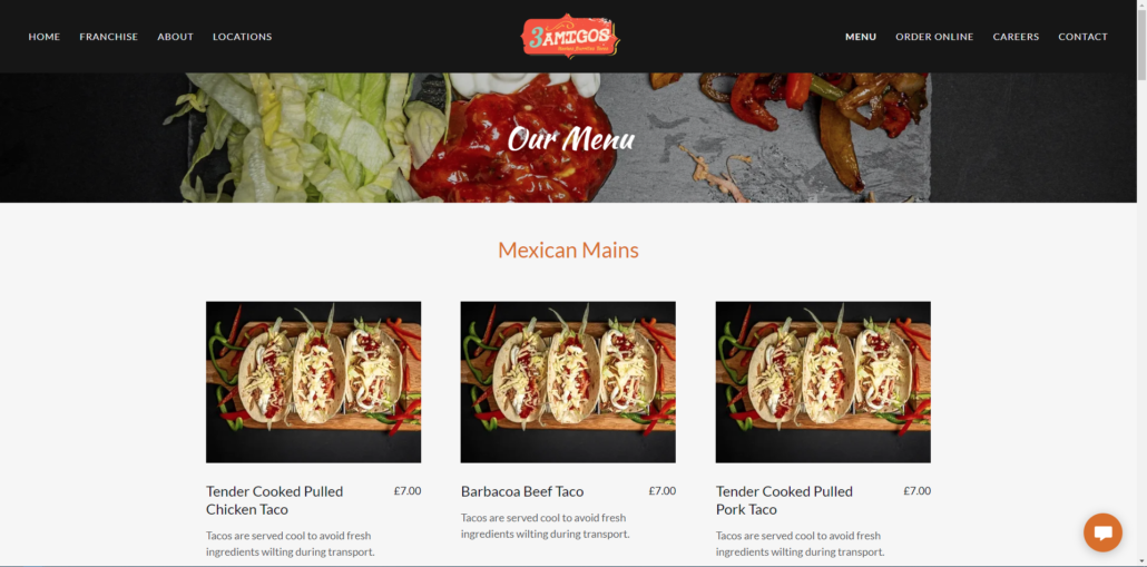 3 Amigos is a Mexican Restaurant based in the United Kingdom. 3 Amigos wanted an online website to showcase the 3 Amigos Brand and what they offer. We created them a website that would show about the 3 Amigos company and also what menu they offer, careers, franchising and more.