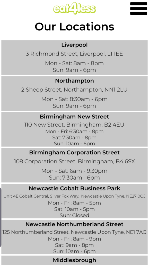 The Eat 4 Less mobile application was created in the same way the Pizzaro app was created with all the same functionality required to collect stamps, register and login to accounts no matter the device the customer is using.