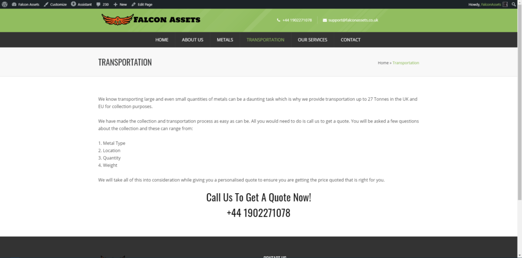 Falcon Assets wanted a website that would showcase the company to the United Kingdom and Europe. To this end we developed a website which would showcase what they were all about while also showing the goals Falcon Assets had in mind. The website lists all information about what the company does and the goals they have in mind while also being ECO Friendly.