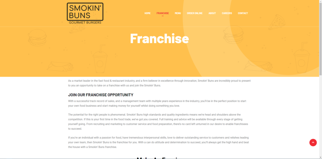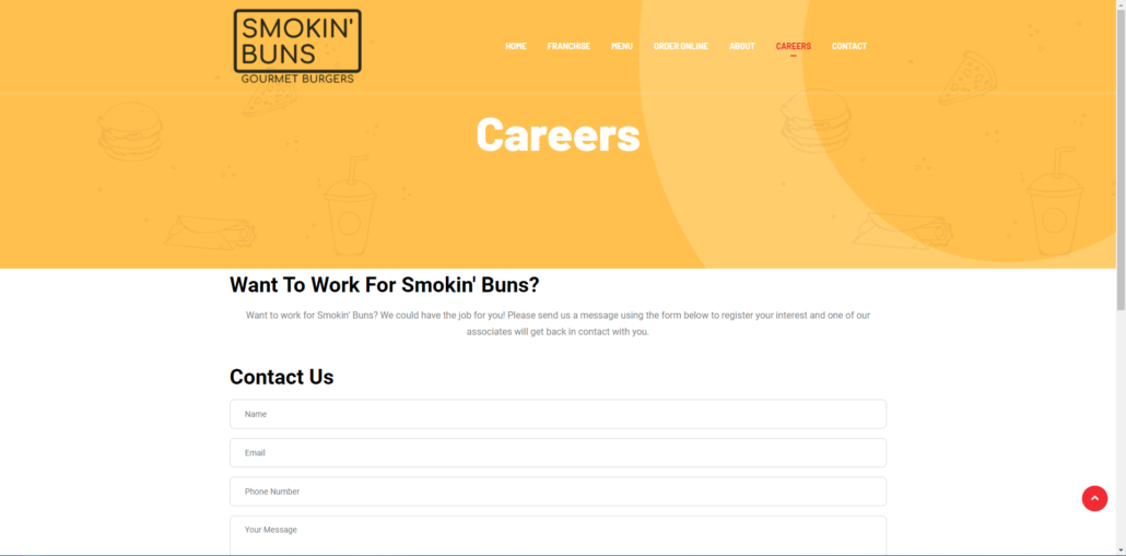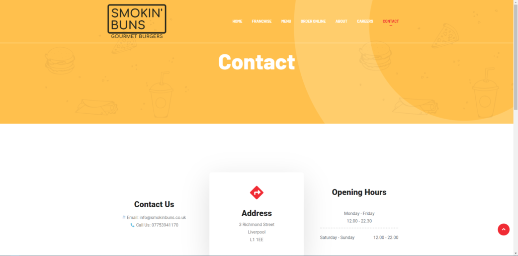 The Smokin Buns website was created for a restaurant company with a wide scale range around the United Kingdom. This project required a full website designed in food showcase way with all the pages required to show and inform everything Smokin Buns do such as Franchising, Menu, Careers and more.